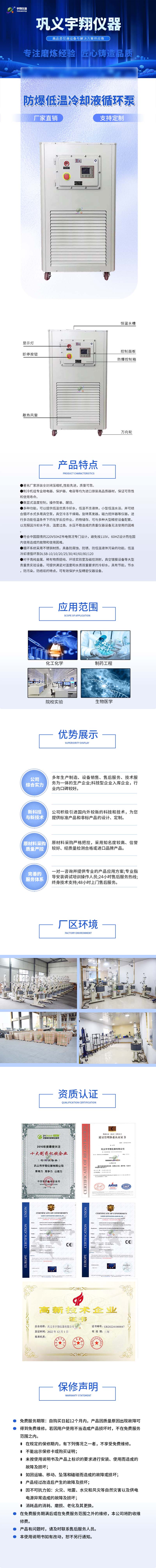 采用壓縮制冷方法的防爆低溫冷卻液循環(huán)泵設(shè)備,可直接冷卻試管、反應(yīng)瓶等進(jìn)行低溫下的化學(xué)反應(yīng),進(jìn)行化學(xué)品和生物制品低溫貯存,也可結(jié)合旋轉(zhuǎn)蒸發(fā)儀、真空冷凍干燥箱、循環(huán)水式多用真空泵等配套使用。